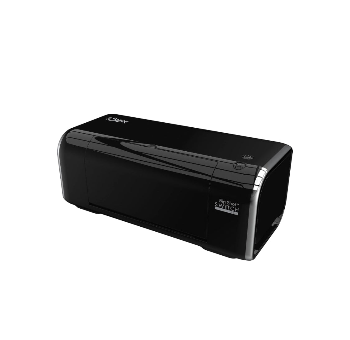 - ¡Avanza en tus marcas con la máquina troqueladora eléctrica Big Shot Switch! Esta máquina contemporánea de alto brillo con elegantes detalles cromados tiene un simple sistema de dos botones y función automática de alimentación e inversa, lo que te permite cortar sin esfuerzo con solo tocar un botón